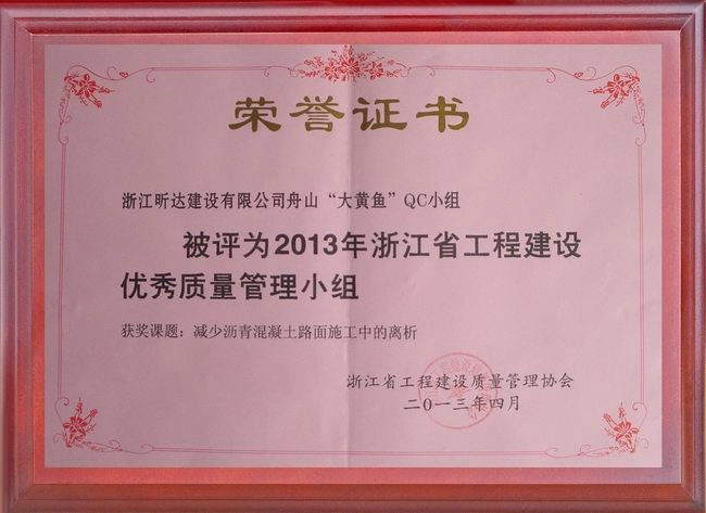 会上,专家组随机抽取发表序号,发表人现场进行PPT演示并讲解,通过问题解决与创新情况这两方面对成果进行评分。经过两天的评选,25个课题被推荐到浙江省建筑协会交流,25个课题被推荐到中国施工企业协会,25个课题被推荐到中国建筑协会交流。与此同时,大会对71个在运用新材料、新技术、新工艺以及节能减排方面成果突出的课题进行了资料汇编,在全省加以推广学习。我公司的东港纬五路QC小组发布课题《减少沥青混凝土路面施工中的离析》,并荣获“2013年度浙江省工程建设优秀QC小组”称号。