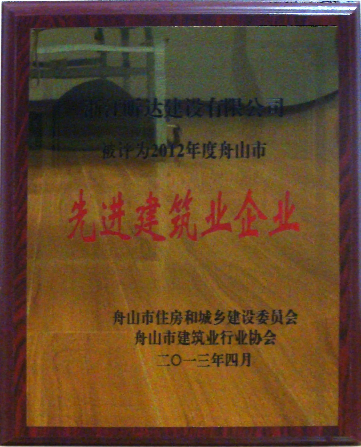 根据《关于组织申报2012年度舟山市先进建筑业企业、舟山市建筑业优秀企业经理、舟山市建筑业优秀项目经理的通知》,经各县(区)建筑业行业协会推荐,评审委员会评审,浙江昕达建设有限公司被评为2012年度舟山市先进建筑业企业,徐龙被评为舟山市2012年度优秀项目经理。