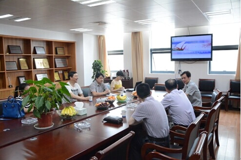 昕达建设常务副总陈华飞首先以PPT的形式就企业概况向来宾做了介绍,重点介绍了企业近年来所创建的一批名优工程。接着双方就新形式下如何加强企业建设和其他共同感兴趣的话题进行了讨论。金秘书长诚挚邀请我公司赴湖州开拓外埠市场,双方企业领导人也表示会以此次考察活动为契机加强两地企业今后多方面的沟通与协作。