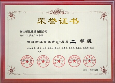 2014年度浙江省质量协会QC成果发布会于6月25—27日在桐庐开元名都大酒店举行,共有来自全省的500个QC成果参与了此次发布会,我公司舟山“大黄鱼”QC小组的两个QC成果《提高真空堆载排水板插设质量》和《提高沥青混合料面层低温季节施工质量》分别荣获浙江省优秀QC成果二等奖和三等奖。