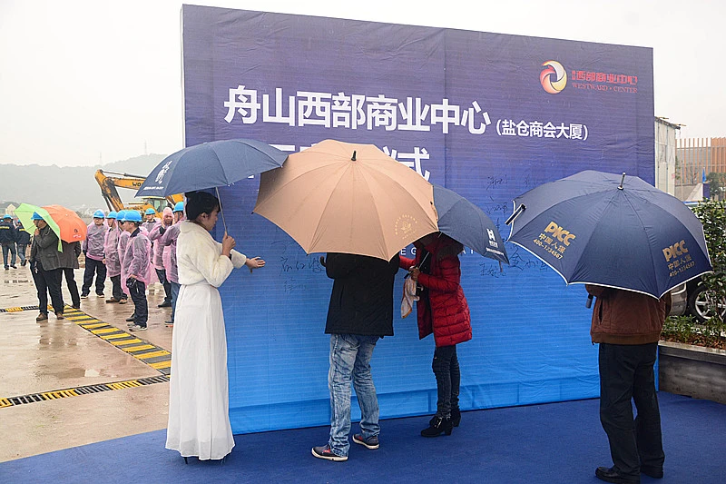 伴随着定海区委常委统战部长林伟康宣布:“舟山西部商业中心正式开工!”现场昕达建设施工人员挥舞彩旗指挥桩基正式开始进行施工作业。