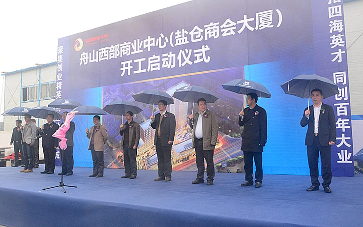 9点28分舟山西部商业中心(盐仓商会大厦)开工启动仪式正式开始