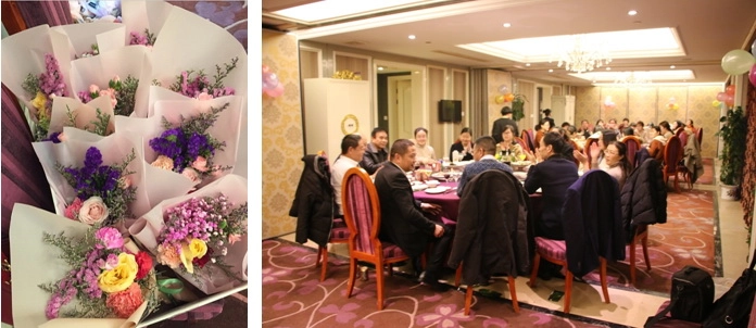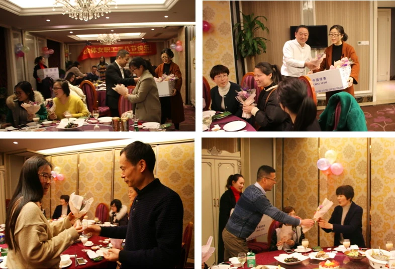 聚餐开始后,公司管理层向在座的女职工一一送上鲜花,以表示节日的祝福。
