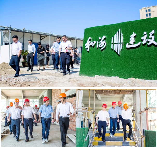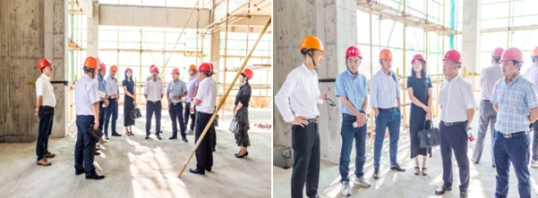 6月1日下午,浙江和海建设科技集团有限公司上海勘察院、杭州市政交通设计院成立签约仪式隆重举行。仪式开始前,和海集团总裁谢贤常先生、副总裁吴加松先生、徐龙先生带领上海勘察院、杭州市政交通设计院主要团队成员参观“和海集团总部办公楼项目”。