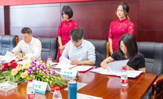 和海集团董事长谢海常先生与上海勘察院负责人黄峰先生、许来香女士签署《浙江和海建设科技集团有限公司上海分公司合作协议》。