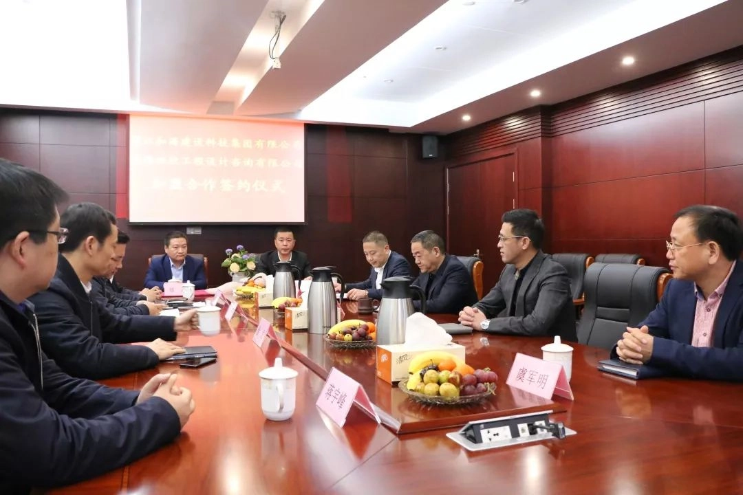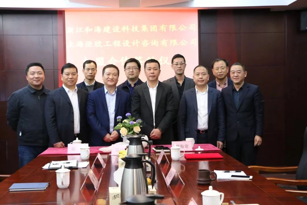 12月8日下午,浙江和海建设科技集团有限公司与上海泾欣工程设计咨询有限公司的合作加盟签约仪式在和海集团举行。上海泾欣公司总经理郑洲,和海集团董事长谢海常,总裁谢贤常及集团其他领导出席了本次的签约仪式。