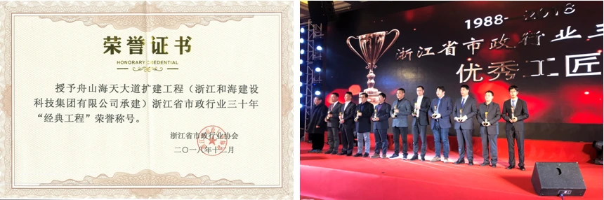 大会现场对各项荣誉进行了颁奖表彰。其中,我公司承建的舟山海天大道扩建工程荣获“浙江省市政行业三十年经典工程”称号,我公司副总裁徐龙作为舟山市唯一一个荣获浙江省市政行业协会三十周年优秀工匠称号接受现场颁奖表彰。
