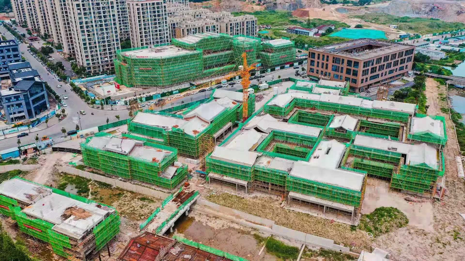 近日,普陀水街旅游综合开发项目两个地块——健康邻里中心和城市花厅顺利结顶,一栋栋精致的中式建筑平地而起,工人们在炎炎夏日挥汗如雨,正加速推进项目建设。