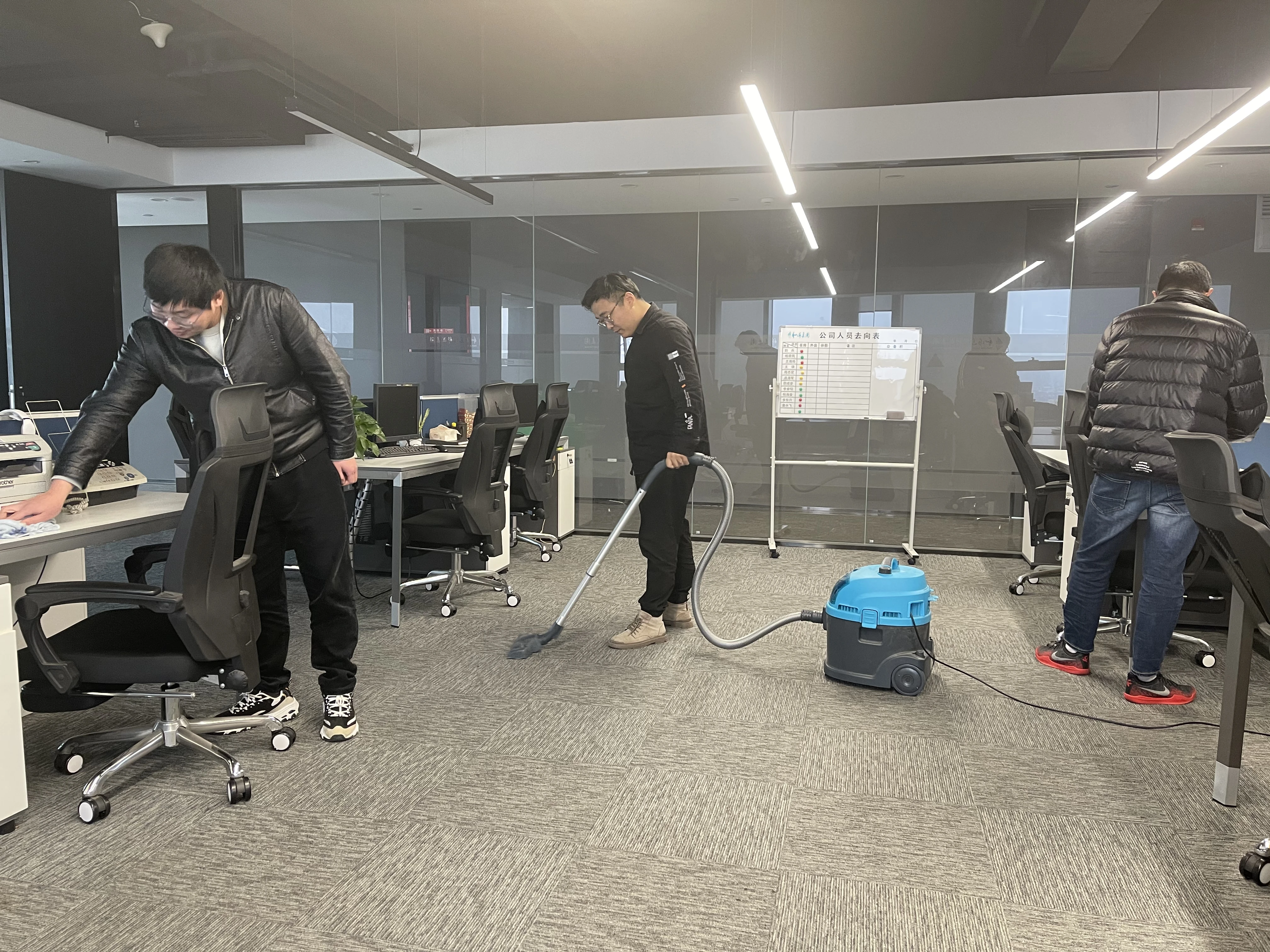 办公区域也是一片热火朝天的景象,经过大家的打扫,每个办公室变得窗明几净,办公桌、办公设备也摆放得井然有序,以崭新的面貌迎接新的一年。