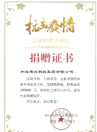 2月,捐款20万元用于援助新冠病毒疫情,同月捐赠7万只口罩给舟山当地政府。 9月,海基金第三所希望小学——海基金白果村希望小学捐建完成正式投入使用。