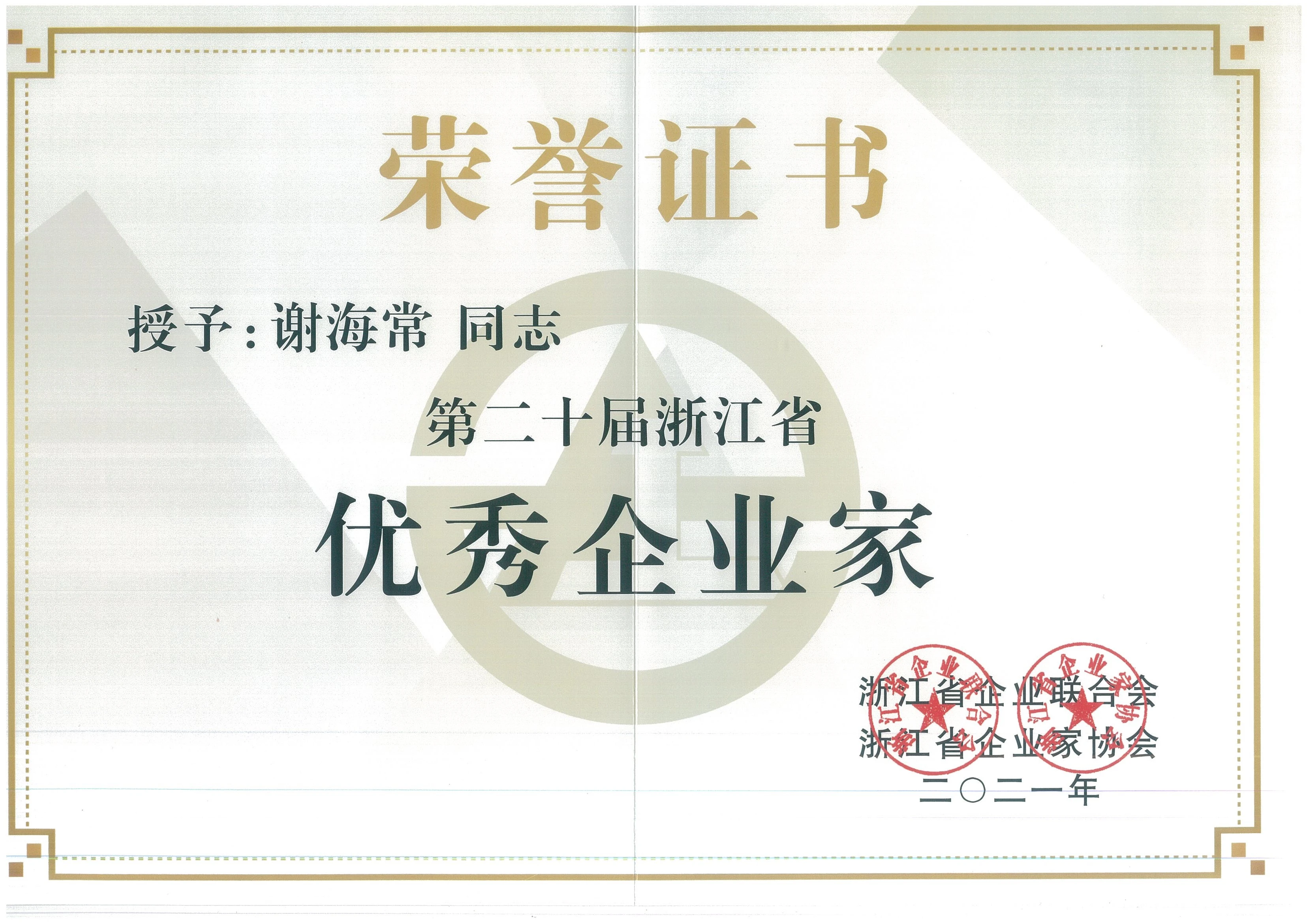 近日,浙江省企业联合会、浙江省企业家协会联合发布了“2021第二十届浙江省优秀企业家”名单,和海集团董事长谢海常经多轮严格考核,最终荣获“浙江省优秀企业家”称号,是舟山市唯一一位获此殊荣的企业家。