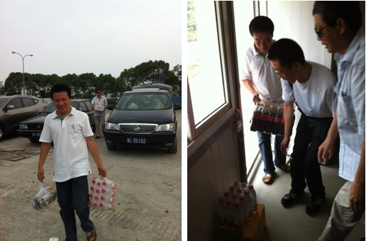 高温酷暑,骄阳似火,7月10日至11日, 在公司总经理徐龙的带领下,公司领导班子全体成员顶着烈日先后对恒宏大厦、广益矿业、海天大道扩建工程、舟山主城雕《日出》基座及配套景观工程、舟山市大陆引水预处理及配水工程等5个急、难、险、重项目部进行防暑降温慰问,共计慰问施工一线员工200余名,送去矿泉水、板蓝根、十滴水、藿香正气丸、风油精等防暑降温物品。
