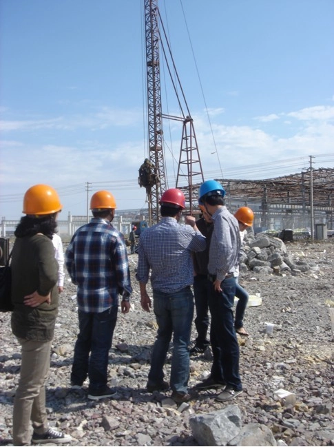 参观中,钓琅湾项目负责人王经理首先向观摩人员介绍了项目基本情况。他指出:舟山港股份钓浪码头分公司陆域堆场工程是舟山保税港区本岛分区工程的一部分,建设内容主要为集装箱堆场、件杂货堆场、综合堆场,以及辅助管理用地,总占地面积32.61万平方米,其中19.55万平方米为保税区堆场,9.06万平方米为内贸堆场。目前,该项目正紧锣密鼓的向地下埋设排水板。