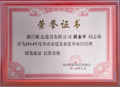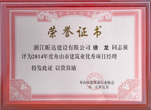 徐龙、顾金平获2014年度舟山市建筑业优秀项目经理称号
