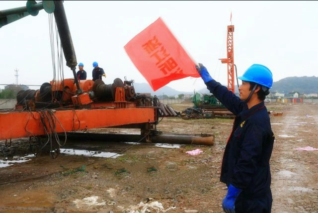 伴随着定海区委常委统战部长林伟康宣布:“舟山西部商业中心正式开工!”现场昕达建设施工人员挥舞彩旗指挥桩基正式开始进行施工作业。