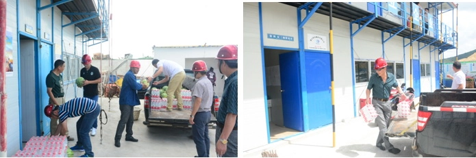 公司领导为奋战在一线的项目建设者送上了西瓜、饮料、药品等防暑降温用品,向现场相关负责人详细了解了项目建设情况和员工工作生活情况,对广大项目建设者在高温期间坚守一线岗位,为确保项目稳步向前推进所做出的努力表示感谢。