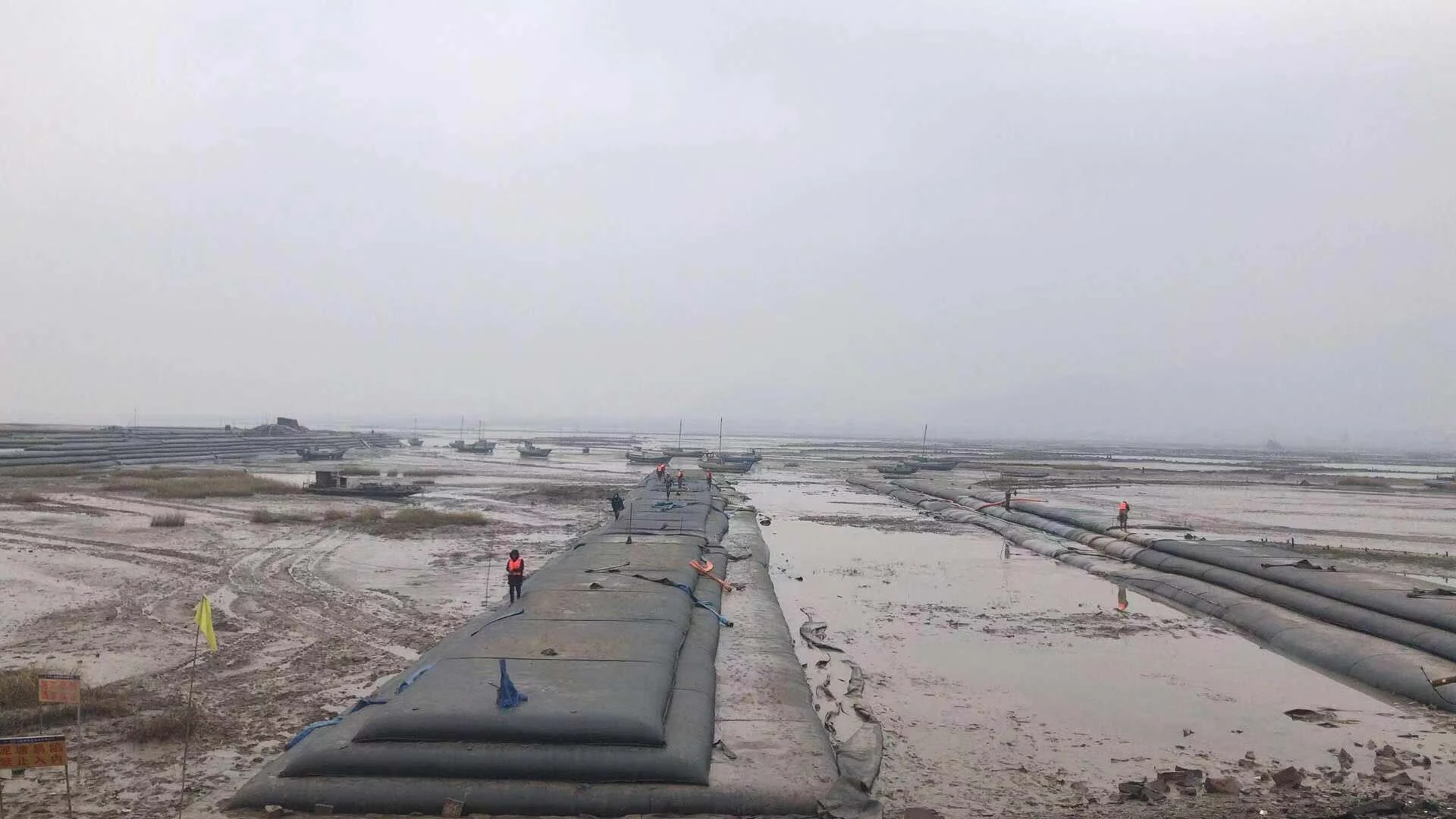 宁海县西店新城围填海吹填砂工程自2018年11月28日正式施工起,至2019年1月10日已完成袋装砂吹填185217m³。