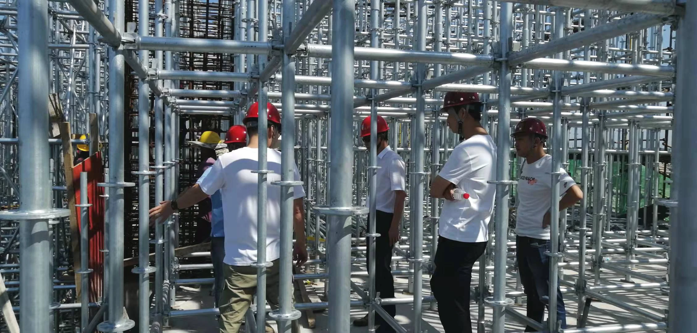 9月23日上午,集团副总裁徐龙带领工程部、安全部等部门员工前往舟山市污泥处理项目部参观学习承插型盘扣式钢管支架系统搭设工艺,了解盘扣式脚手架的功能优势。
