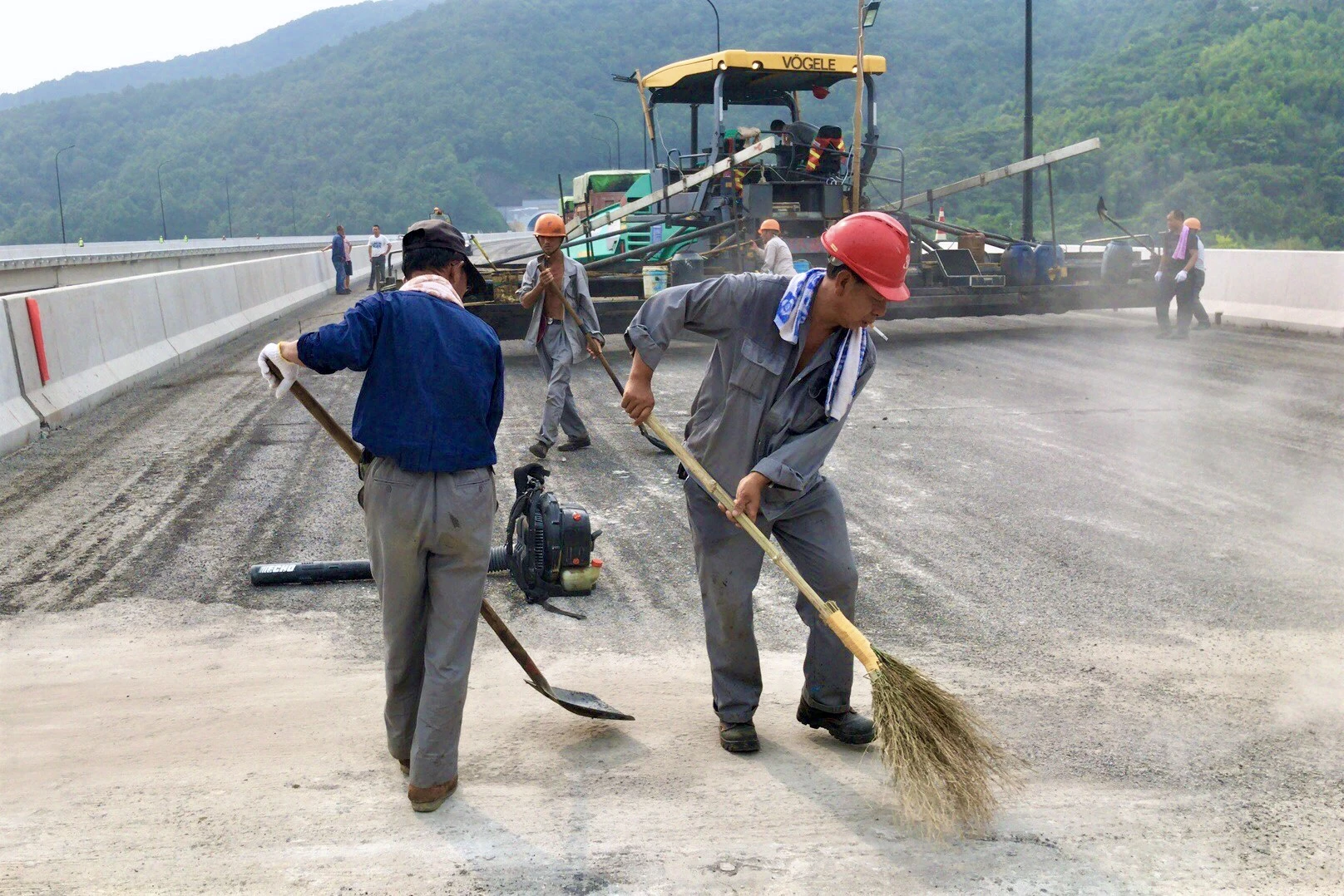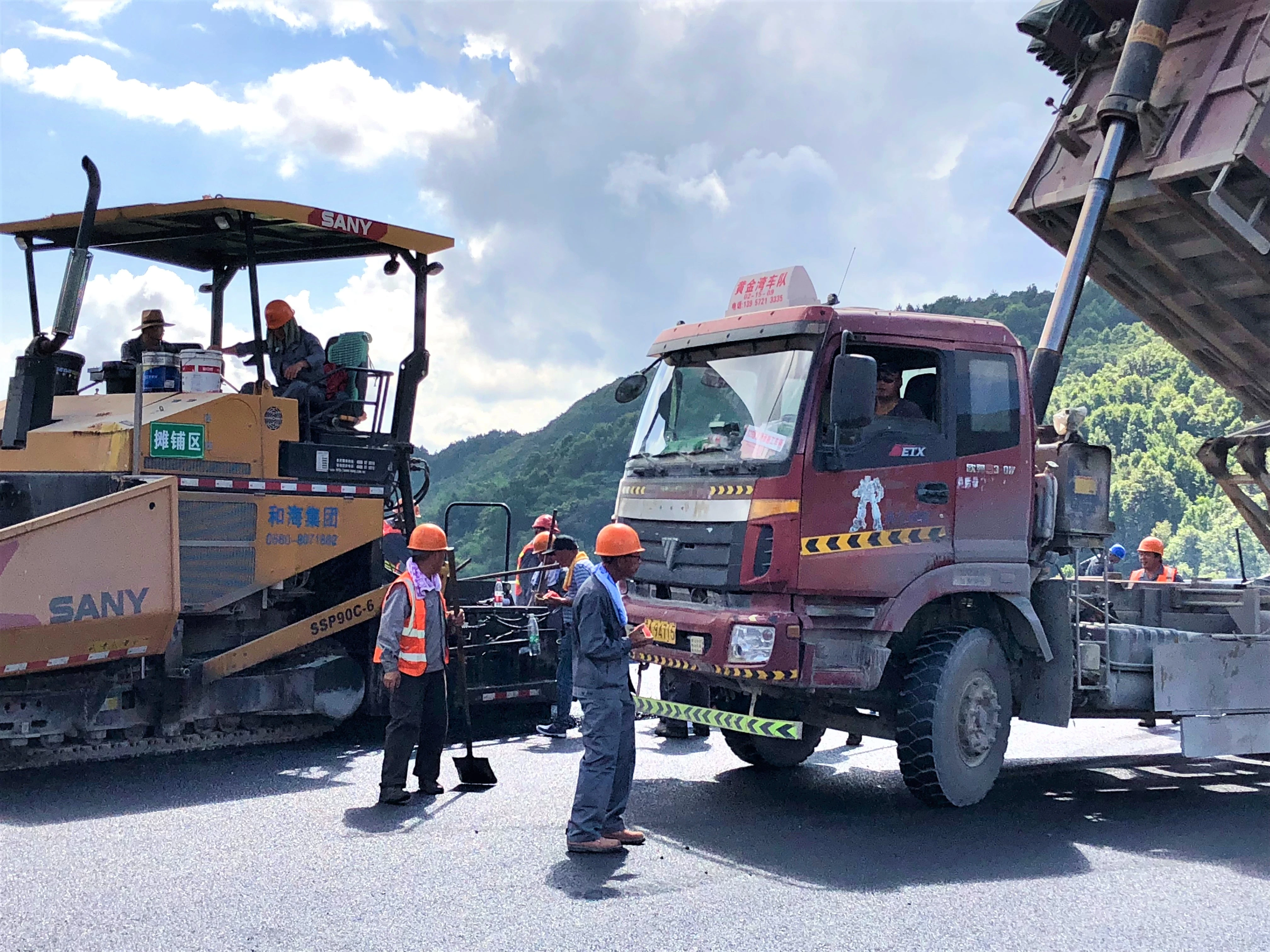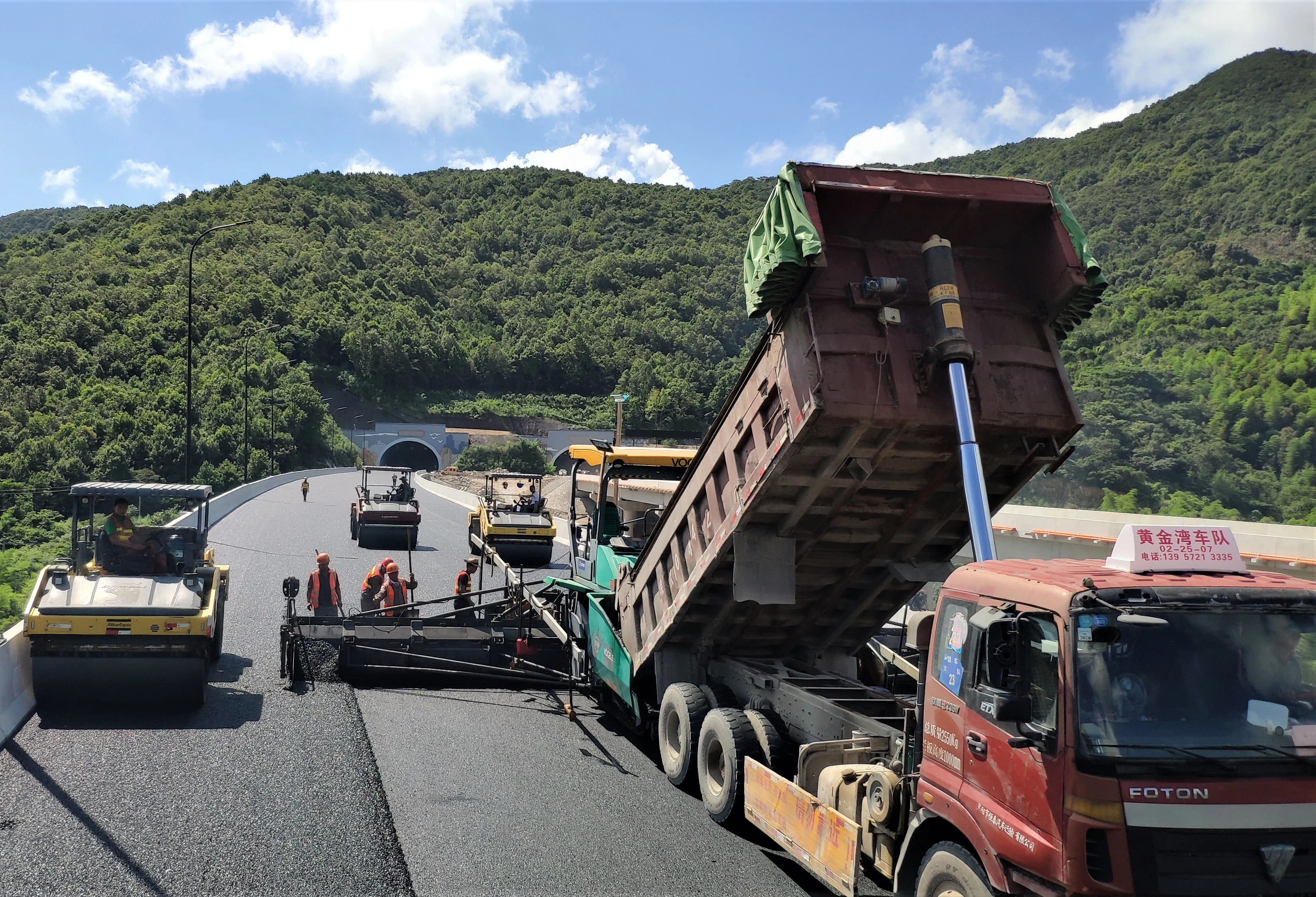 8月13日,从早上4点到晚上10点,历时整整18个小时,工人们不辞辛苦地加班加点,一边生产一边施工,顺利完成了329国道竹尖岗隧道及路口的施工。当日沥青混凝土的产量高达3074吨,是平日产量的1.5倍,创公司单日生产新高!