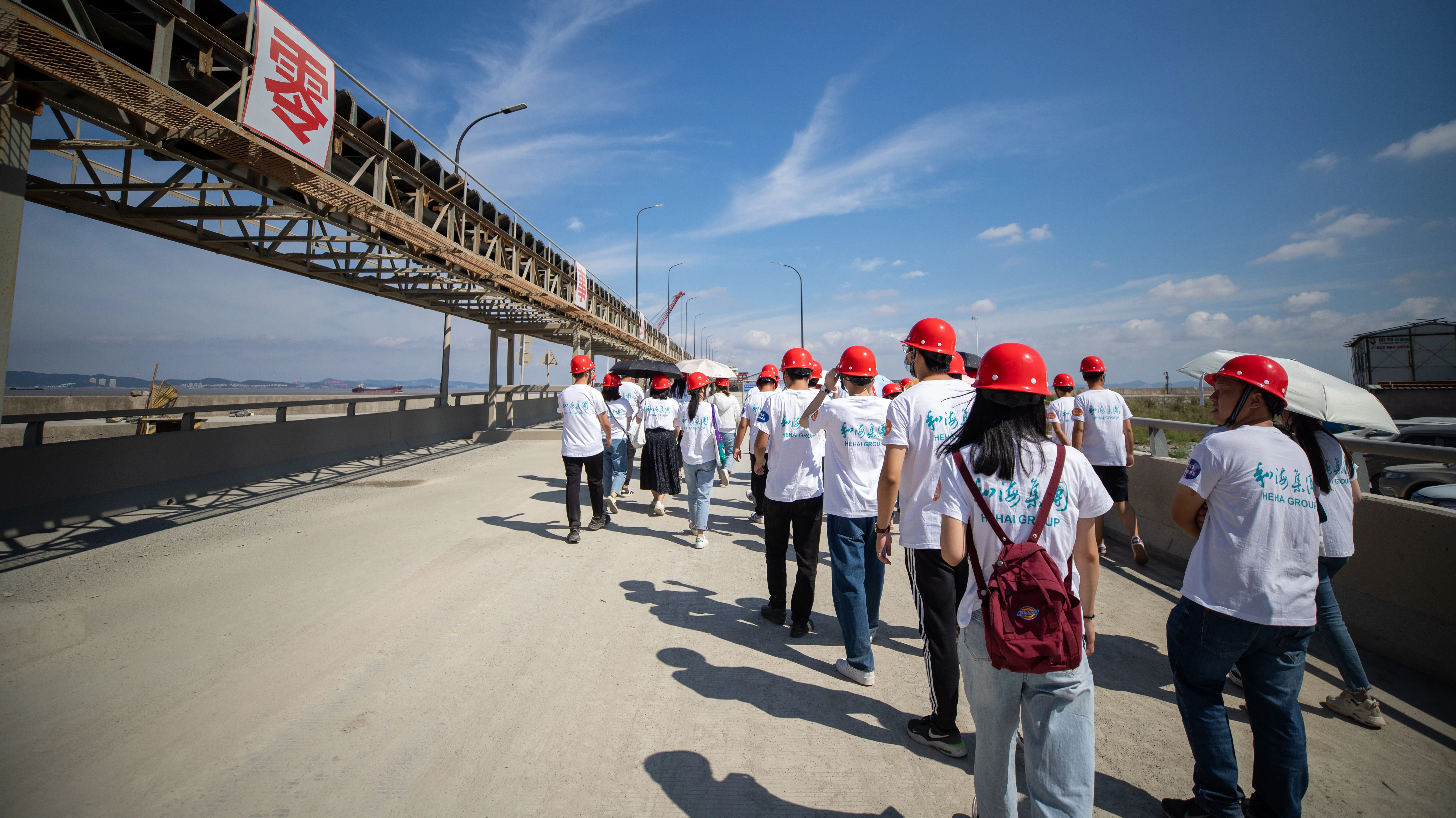 项目现场,庞大的带式输送系统足有8公里长,如巨龙盘踞,蓄势待发。利用行业领先的智能中央控制系统,可实现无人化作业、精准化计量、可视化监控。新员工们观看项目现场和中控室后,被和海集团智能的高科技所震撼,更是对集团的明天充满了信心。